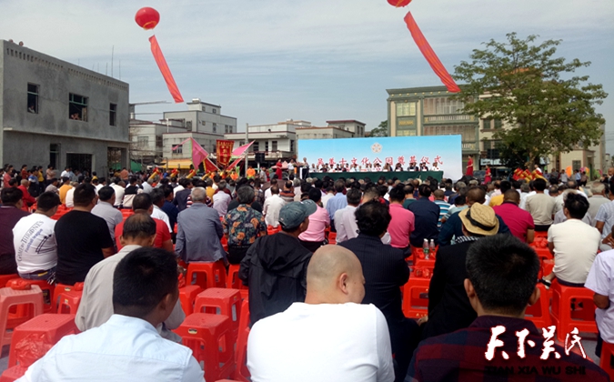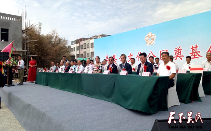 10月31日上午10点半左右,吴善士文化公园暨善士祖祠奠基仪式正式开始。首先是由族亲吴林盛作《吴善士文化公园》简介。接着是,由惠来县吴氏善士祖理事会吴喜钦会长致辞。第三是,由惠来县吴氏总会吴汉林会长讲话。第四是,由旅港潮陽臚溪上厝鄉吳義盛堂同鄉會吴炎逵主席讲话。第五是,由香港泰伯基金会当届会长吴立辉讲话。第六是,由族亲前华南师范大学党委常委副校长、华师大附中校长、现广州中学校长、教育家吴颖民发表感言。第七是,由国家级非物质文化遗产项目“青狮表演”。第八是,进行吴善士文化公园暨善士祖祠建设项目奠基培土。