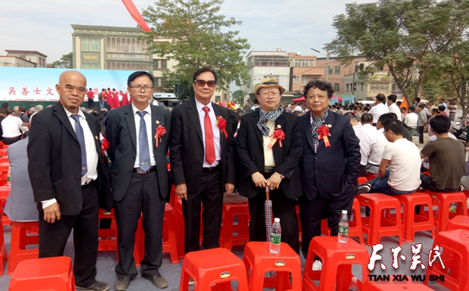 香港泰伯基金会参加吴善士文化公园暨善士祖祠奠基仪式代表团成员为:当届会长吴立辉,常务会长吴炎逵、吴鹏、吴桂宣、吴锡义,常务副会长兼秘书长吴昌禄,会员吴俊廷。