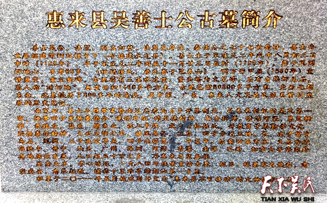 800多年前,吴善士公迁居惠来乌石村开基创业,开枝散叶,英才辈出,兴旺发达,裔孙遍布海内外。今天,惠来吴氏在惠来县吴氏善士祖理事会吴喜钦会长的带领下,全体族亲同心同德,齐心合力,吴善士文化公园暨善士祖祠建设项目工程一定会顺利推进并取得圆满成功。他们这种尊宗敬祖的行动,勇于担当的气魄,值得称道和敬佩,将激励我们并教育子孙尊宗敬祖,铭记祖德。