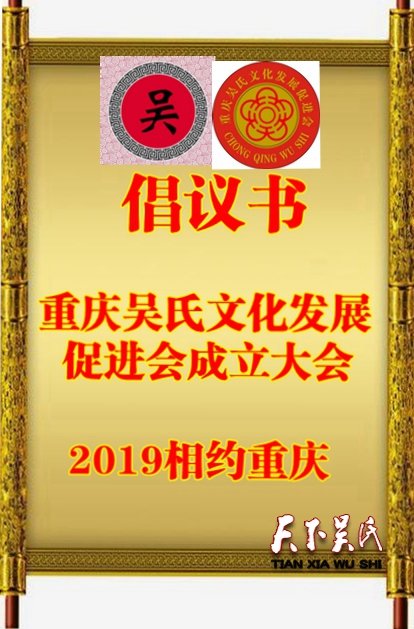 现就有关重庆吴氏文促会成立大会如下倡议,希望你、期待你的鼎力支持和参与。(本着量力而行、自愿奉献精神。)