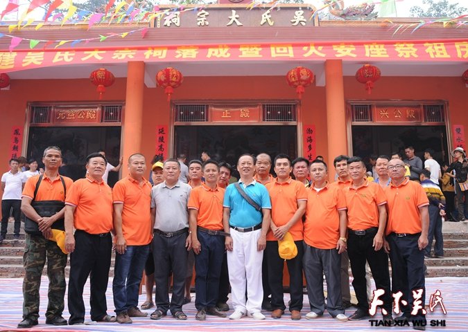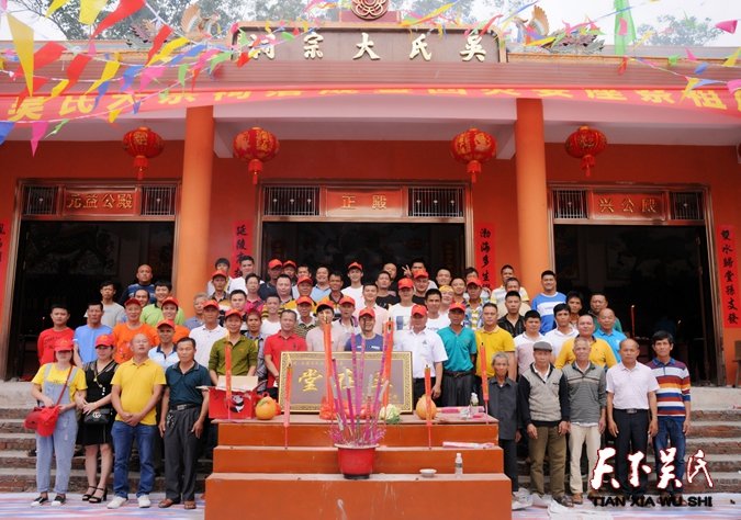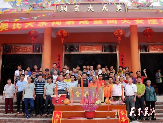 上午10时正,由琼海市吴贤秀研究会会长吴平致辞!揭牌!回火升殿安座大吉!石壁“吴氏大宗祠”,是唐代户部尚书,渡琼始祖吴贤秀公、玟公、21世祖拔公为主殿,25世祖兴公、真公、元益、道丰、福祥、真悌、如云、中植、道珍、道愈、经现等诸祖先。其支世系子孙后代宗亲繁衍分布遍全海南岛各县市及海内外。是目前海南最大的吴氏宗祠。每年的正月初八是祭祠庆典日。