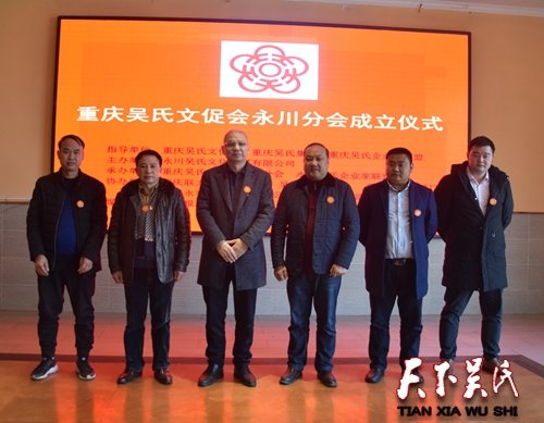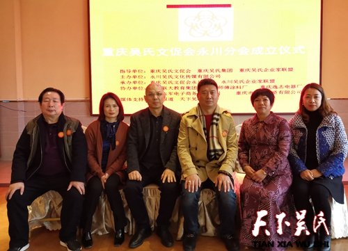 由重庆吴氏文化发展促进会党支部书记兼监事长吴晓非代理任重庆吴氏文促会永川分会会长,吴志国任重庆吴氏文促会永川分会执行会长,吴学海、吴修刚、吴长清、吴清贤任名誉会长,吴志奇、吴清伦、吴修炼、吴平国、吴德鹏、吴君凤任分副会长,吴清伦任秘书长;吴平志、吴至善、吴小红、吴至春、吴明凤任副秘书长。