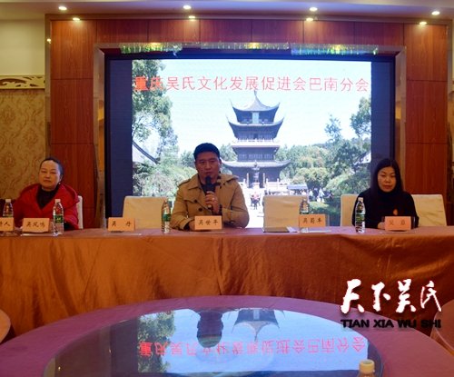 吴氏文化发展促进会巴南分会会长吴帮全发表就职演讲,表示一定尽职尽责带好头、办好事,为巴南吴氏办实事。