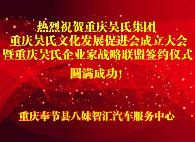重庆吴氏文促会成立协办单位八妹智汇汽车服务中心