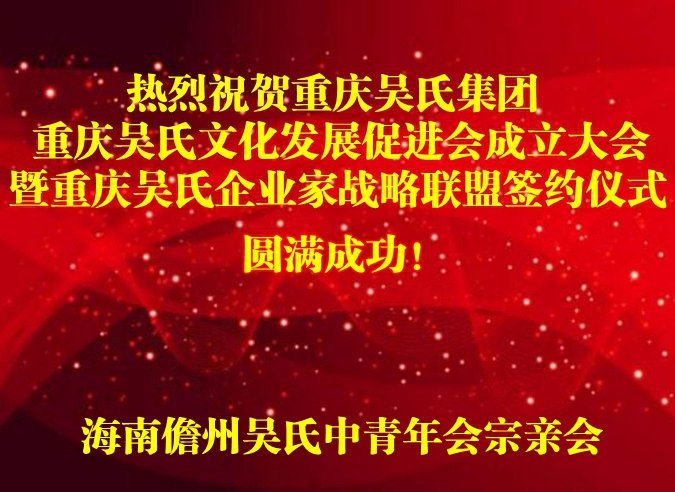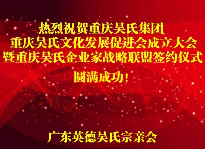 预祝重庆吴氏文化促进会成立庆典圆满成功!