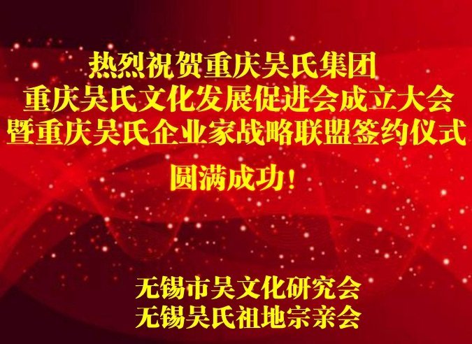 预祝重庆吴氏文化促进会成立庆典圆满成功!