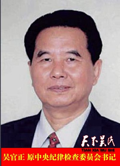 05吴官正,男,1962年3月加入中国共产党,1968年4月参加工作,清华大学动力系热工测量及自动控制专业毕业,研究生学历,工程师。曾任中央政治局常委,中央纪律检查委员会书记等职务。