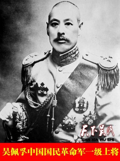 10吴佩孚(1874年4月22日—1939年12月4日),字子玉,山东蓬莱人。民国时期直系军阀首领、中国国民革命军一级上将、官至直鲁豫两湖巡阅使、十四省讨贼联军总司令。吴佩孚早年先后又到开平武备学堂、保定陆军速成军校学习,毕业后到北洋督练所参谋处任职。辛亥革命时,在曹锟手下任第三师师长。曹吴在北洋军阀时期结成军事集团,史称直系军阀。1920年,吴、曹直系军阀与段祺瑞的皖系军阀之间爆发了直皖战争,曹吴得胜,入主北京。在京期间,吴佩孚主张召开国民大会,解决国内问题,遭到曹锟及其它军阀的反对,只得率师回顾洛阳。徐世昌任大总统时,任命吴佩孚为直鲁豫巡阅副使。1922年,吴佩孚反对梁士诒内阁将胶济铁路的权益出卖给日本,反对直系通辑的皖系政客,导致了直奉大战。最后将张作霖的奉系赶到了关外。这场战争使吴佩孚名声大振,成了直系的首要人物。1923年,曹锟当总统,吴佩孚升任直豫鲁巡阅使。但吴后来镇压工人运动,在北伐战争中失败逃到四川,后又回北平。[2]吴佩孚反日立场坚定、鲜明,九一八事变后,他多次参加反日活动。抗日战争爆发后,日本特务机关想选择吴为傀儡,建立全国性政权,被吴严词拒绝。1939年12月4日,吴佩孚病逝。吴佩孚维护民族大义,保持了晚节,被国民党政府追赠为陆军一级上将。他还是亮相《时代》杂志封面的首位中国人,被《时代》杂志称为“Biggest man in China ”。