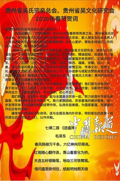 贵州省吴氏宗亲总会会长吴学强2020春节献辞