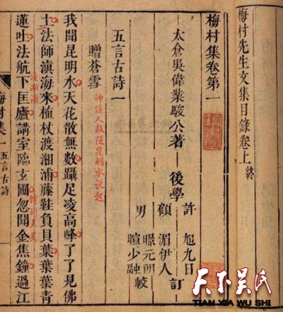 吴氏人物传——吴梅村他真正的名字叫吴伟业,字骏工,号梅村,亦号鹿樵生、灌隐主人,后诗、词文章皆以“吴梅村”暑名,以致于大家习惯了他的号名,而忘记了他的真名“吴伟业”,由于他曾担任过国子监祭酒,后人又多称他为吴祭祖。那么,国子监祭酒相当于现在什么职位呢?教育部部长?国子监祭酒是中国古代中央政府官职之一,始于西晋武帝国子祭酒,后经北齐、隋唐、明清演变。该官职基本隶属于朝廷最高学府国子监。主要任务是掌大学之法与教学考试。古代在国子监读书的学生称为“监生”。国子监不仅接纳全国各族学生,还接待外国留学生,为培养国内各民族人才,促进中外文化交流,曾起到积极的作用。唐宋八大家之首韩愈、明代理学家湛若水、贪官严嵩、明代著名首辅徐阶都做过国子监祭酒,王懿荣发现甲骨文时也是国子监祭酒。