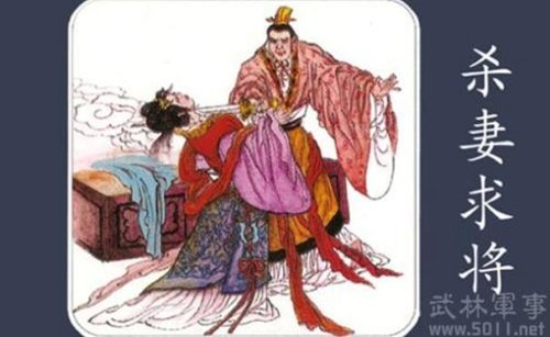 在到鲁国做中大夫前,吴起便已娶齐人田宗之女为妻。所以当齐军伐鲁时,鲁相国公仪休就向鲁穆公建议:“欲打退齐兵,非吴起不可"。可穆公却一直没有答应。因为鲁穆公觉得虽然吴起确有大将之才,但其所娶田宗之女是齐人,一般来说至爱莫如夫妻,吴起既然娶了齐人之女为妻,若拜为鲁将,难保不为齐国着想而不能全力为鲁。吴起得知鲁穆公的担心后,二话没说便回家了。他见到妻子田氏便问:“丈夫能位列卿相,食禄万钟,名留于千古,这是不是妻子所希望的呢?”田氏想都没想便说:“那是当然了。”吴起又说:“如果我想成为那样的人,你能帮我吗?”田氏当然说全力支持了。于是吴起说:“现在齐师伐鲁,鲁侯想任命我为将军,但因为我娶了你而怀疑我不会一心助鲁。如果将你的脑袋献给鲁侯,鲁侯必然信任我,到时我就可以功成名就了!”田氏听了大惊失色,还没等开口说话,吴起早已挥剑斩落田氏之头。作为礼仪之帮的鲁国之君,鲁穆公对吴起这种残忍的作法也是难以接受的,只是苦于国中再无大能人才起用了吴起,不过得胜之后,鲁穆公终因吴起的这种不道德行为而不再重用。
