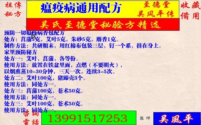 吴风平教授认为健康比什么都重要故而将祖传秘方公开分享给大家其宗旨是让每我们健康快乐生活。是吴家的幸事,更是大家的好事。但中医秘方因人因病因个体而辩证施治,药方因季节、地域差异等特征。所以使用处方前务必电话咨询医师相关事宜以达到更好疗效。