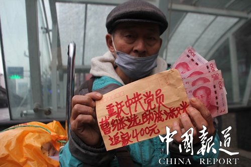 主动助人解心结。助人解难且同时注意做好思想教育工作,是曹继选热心做慈善的另一个特点。去年年末,从四川省西昌市流浪到重庆市九龙坡区杨家坪步行街一带的67岁的庞淑光大爷,遇到了一件且喜且忧的事。庞大爷原籍四川省璧山县,本人出生在重庆主城区,少年时代先后在渝中区桂花园小学和学田湾小学校读书。1971父母亲先后病逝。1973年本人被招至四川西昌的一家企业工作,不幸的是,庞大爷在九十年代因工作中出现重大失误,被企业除名。他回到了重庆,由于举目无亲且无房居住,长期以来靠捡破烂和露宿街头过日子。经过本人多年的申请,鉴于除名前已达到可办理退休手续的最低工作年限,西昌当地社保部门根据有关政策,去年末通知其回当地办理退休手续。办了退休生活就有基本保障啦!也可能是年纪大了偶尔犯糊涂,也可能是高兴得过了头,他一不小心把身份证丢失了,且又无钱购票乘车到西昌去。