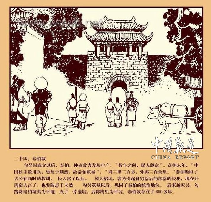 再析太伯奔吴之太伯城遗址。太伯在梅里筑城,建设了江南第一座建筑群——荆村,第一条街道——蛮巷,随着经济文化的不断增强,城市市容不断扩容,城市建设不断提升,城市不断扩大,句吴国的成立,梅里荊村构成了句吴国的文化、经济、政治的中心,形成了句吴国的都城——太伯城。《吴越春秋》卷1:太伯“还荆蛮,国民君而事之,自号为句吴,……起城周三里二百步”。《史记·吴太伯世家》正义:“太伯居梅里,在常州无锡县东南六十里。至十九世孙寿梦居之,号句吴。寿梦卒,诸樊南徙吴。”《方舆纪要》卷25无锡县“泰伯城”条引《吴地记》云:“泰伯筑城于梅李墟,周三里二百步,外廓周三百余里。今曰梅李乡,亦曰梅李村。”建立都城,不光是为了治理国家,教化百姓,还有防衘的需要。当时各方国家的生产水平参差不齐,物质普遍较为匮乏,掠夺他国也是常有的事。而吳地自然环境优越,吳人又因泰伯而掌握了中原先进的农业生产技术,物产也越来越丰沛,这更勾起其他国家前来掠夺的欲望。正如《吳越春秋》中所云:”泰伯当殷之末,中原候王数用兵,恐及于荆蛮,故起城,周三里二百步,外郭三百余里。在吳西北隅,名曰故吳。人民皆耕田其中。”由此可见,泰伯所建的梅里都城既是一个生产基地,治国中心,也是一个军事据点,它为吳国的生存与发展奠定了基础。所以,尚德崇文,刚柔兼济是吳国特有的高贵精神与风尚,梅里作为吳国国都,是这个国家的象征和这个民族精神的归宿与寄托,即是吳国之国魂所在,亦是孕育吴文化的中心。