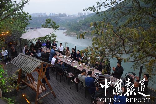 中国报道讯(吴蜀丰报道)虽然白居易的“人间四月芳菲尽,山寺桃花始盛开。长恨春归无觅处,不知转入此中来。”但在南岸区铜锣湾长江边隐江南鱼食府,这里依然呈现春花烂漫的景致,依然是绿水青山,风和日丽,春意盎然。