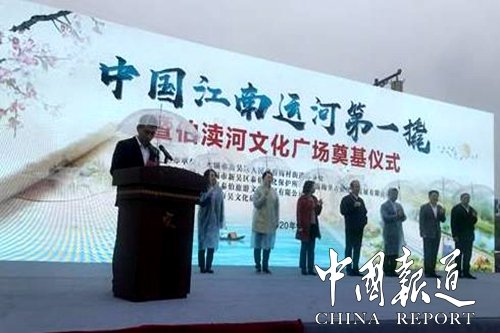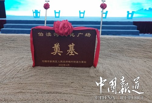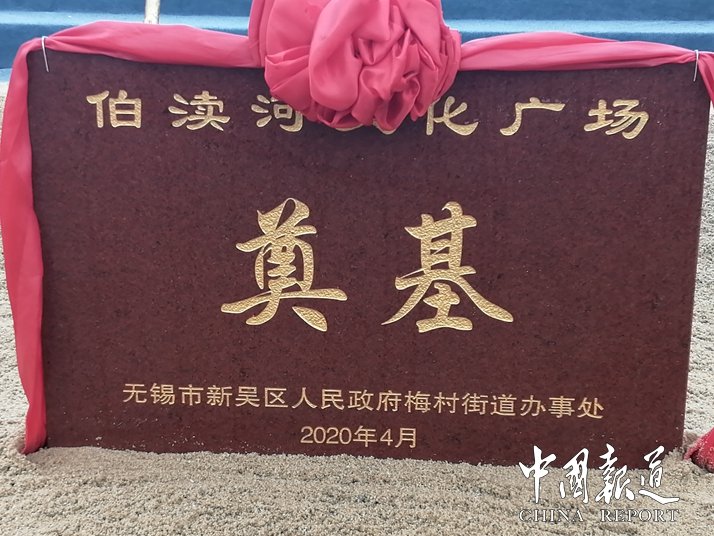 中国报道讯(通讯员吴建东吴乐一)2020年4月11日上午,梅村街道伯渎河旁人声鼎沸,广场上站满了人群,“中国江南运河第一撬”伯渎河文化广场奠基仪式在伯渎河旁盛大举行。即使现场风雨交加,也抵挡不住所有人对此次奠基仪式的期待。