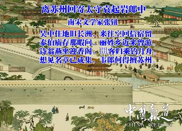 中国报道讯【编者按】历代文人咏吴国、泰伯及其后人诗文选,《离苏州回寄太守袁起岩郎中》