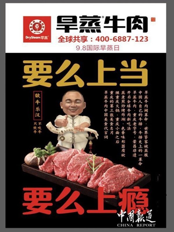 中国报道讯(吴蜀丰)【编者按】《旱蒸牛肉创始人郑国军重庆火锅发源地在荣昌》火锅被称为中国美食,古称“古董羹”,因食物投入沸水时发出的“咕咚”声而得名,它是中国独创的美食,历史悠久,是一种老少皆宜的食物。据考证,战国时期即有火锅,时人以陶罐为锅,到宋代,火锅的吃法在民间已十分常见,南宋林洪的《山家清供》食谱中,便有同友人吃火锅的介绍。元代,火锅流传到蒙古一带。到明清时期,火锅不仅在民间流行,而且成了一道著名的“宫廷菜”,用料是山鸡等野味。