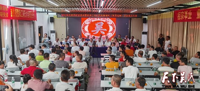 绝代芳华,红色传奇,世纪经典!我们今天的阳江吴氏大会,就是进一步传承与弘扬红色娘子军的革命优良传统精神。团结一致,众志成城,不忘初心,砥砺前行,紧跟新时代中国特色社会主义步伐,继往开来,共同致力谱写吴氏大业华丽篇章!最后吴金芳秘书长,简要宣读建设吴氏大厦爱心捐款《激励条例》和研会(公会)关于建设“海南(琼海)吴氏博物馆”,“海南(琼海)吴氏功德文化艺术展览馆”二馆的决定。