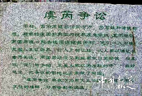 今山西省平陆县,商未是一个小侯国,名叫虞国,虞国的西边紧挨的是今陕西大荔县,在商未称芮国,两国相邻,两国的君王为了边界上的一块田地相互争执,经常吵架,久而不决。