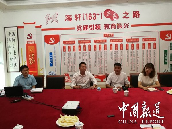 中共安徽海轩教育支部群学书记,重点介绍了把支部党课建在课堂上,坚定走以”红色信念为主线,以蓝色教育为主题,以绿色生态为主轴”的三色之路,深入浅出的解释了运用163法则上党课的典型做法.提出了在建党100周年的举行隆重庆典的设想。