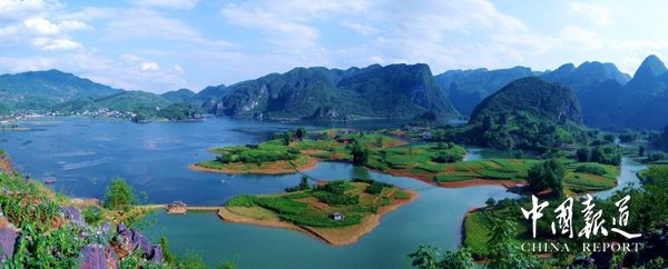 国家先后在红水河修建了十个梯级水电站犹如十颗光芒闪耀的珍珠镶在红水河这条巨大的金链子上,共同展示着广西独特而丰富的水能资源,而在长长的红水河中,最为引人注目的,是其穿过东兰县境内的长达115公里的河段。这115公里长的河段格外壮美,人称红水河“百里画廊”,那如大地震裂的沟壑弯弯曲曲,如斜着抖动的彩带飘飘扬扬,其不仅以富饶的物产养育着两岸的人民,还将自己与生俱来的迷人风光集中呈现在这里的两岸。