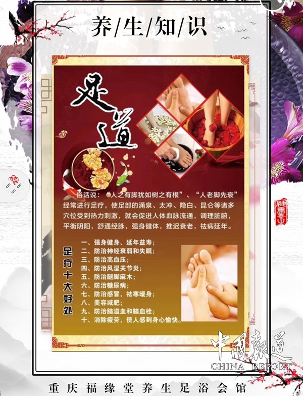 重庆吴氏文化发展促进会会长吴世平认为,由于现代人们的生活快节奏,在繁忙的工作之余来福缘堂养生足浴馆放松下身体缓释压力为自己的健康加分何乐而不为。