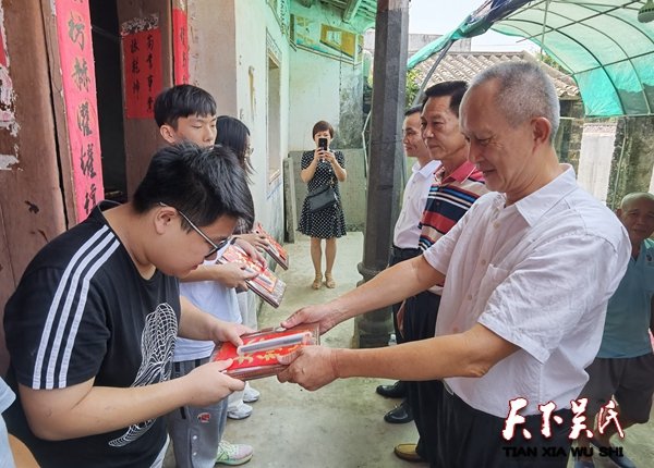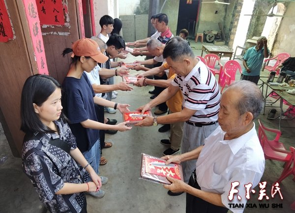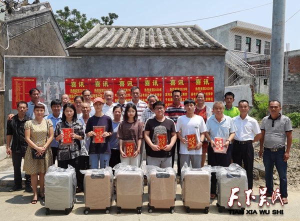 为响应国家抗击新冠病疫的号召,颁奖活动一切从简,上午11时,在塘柳村吴氏宗祠坐满了吴氏宗亲家长以及6位获得奖励金的同学,分别是被北京师范大学录取的吴弘亮、被湖南工业大学科技学院录取的吴清斌、被大连理工大学录取的吴坤键、被海南热带海洋学院录取的吴燕微、被湖南警察学院录取的吴安琪、被海南大学录取的吴以瑄。