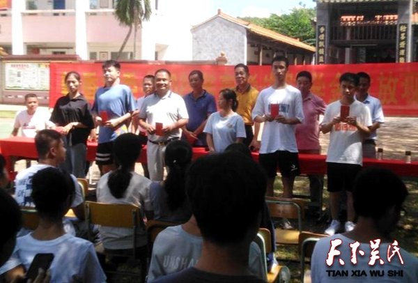 天下吴氏网讯(吴乾山)2020年9月4日,海南省海口市龙华区龙泉镇翰香村举行“奖助学金”发放现场会。用6万多元资金对本村28名今年高考优秀学子进行资助发放奖励金。本次活动由翰香助学基金会,翰香村委会联合举办,来自村里的宗亲学生家长约有100多人参加。