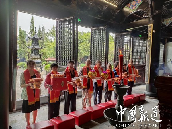 中国报道讯(通讯员吴建东)良知厚道缘修心,信念人格促善行。2020年9月10日上午,在这个秋风阵阵送清爽的吉祥时刻,泰伯吴氏祖地宗亲总会会长吴新、董事长吴焕其宗贤夫妇、副会长吴健龙陪同著名编剧吴洪浩,东阳万力天成影视文化有限公司董事长高级经济师吴永兴教授等怀着对吴氏先祖泰伯的无限敬仰和崇拜之情,来到无锡梅村,为祭拜吴氏的共同先祖而齐聚泰伯庙祭祖,向始祖泰伯塑像敬献帛塔等仪式。表示对祖先的怀念和感恩。到场的吴氏族人神情肃穆,整齐衣冠肃祖先案前,满怀对先辈的思念与敬仰,在司仪吴明刚、执事吴建平等主持下完成祭拜仪式。