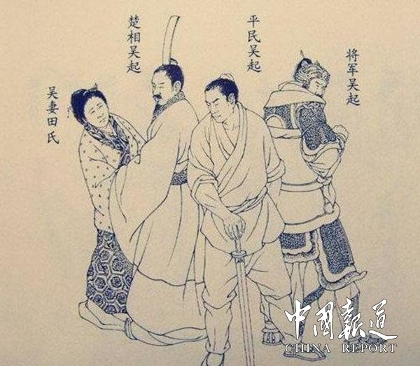 黄道周:吴子忍人,怒诛笑谤。母死不归,杀妻求将。曾子薄之,鲁君疑放。然而用兵,穰苴不让。甘苦与同,士卒乐仗。守魏西河,秦畏东向。在德一言,圣贤度量。魏人忌之,去为楚相。北并南平,功在人上。惜犯贵宗,终令身丧。