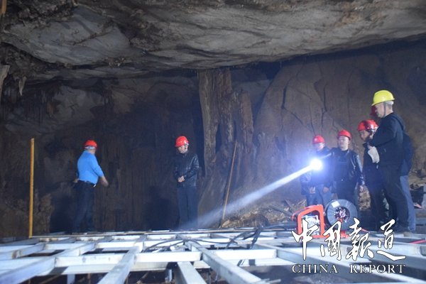 香港进源集团广西第一湾股份有限公司有关负责人认真地介绍了长乐宫景区复工以来的工作情况,长乐宫景区今年10月12日复工以来先后完成洞内步道钢结构施工合同签约、洞内灯光施工合同签约、洞内监控施工合同签约、洞外村口牌坊和景区牌坊及洞口阶梯木结构施工合同签约、完成监理,地质,勘察合同签约。各施工队伍先后陆续有序进场。