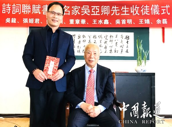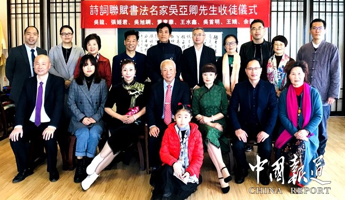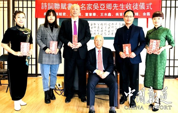 中国报道讯(吴蜀丰报道)2020年11月21日上午,中华诗词学会发起人、中国楹联书艺委委员、浙西词派传人、诗词联赋书法名家吴亚卿收徒仪式在杭州太易书院举行。此乃吴亚卿先生继去年收徒后的再次收徒。