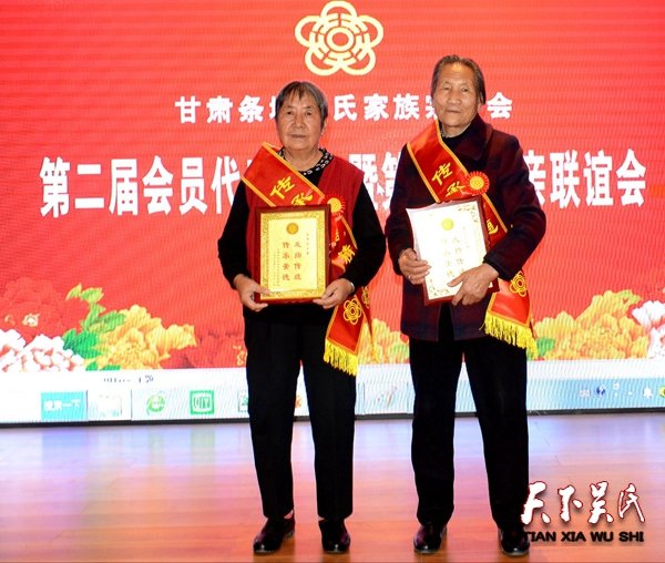 会上,甘肃条城吴氏家族宗亲会副会长吴文仁、吴文军、吴文发代表宗亲会分别宣读了《甘肃条城吴氏家族宗亲会关于表彰吴生财等23名年长宗亲的决定》,《甘肃条城吴氏家族宗亲会关于对张秀芳等14名家族媳妇给予表彰的决定》,《甘肃条城吴氏家族宗亲会关于对吴兰珍等4名家族姑娘给予表彰的决定》。大会对多年来积极参与支持家族宗亲会工作,积极弘扬优良传统、传承文明家风,尊亲睦族,孝亲敬老等方面表现比较突出的23名年长老宗亲,14名家族媳妇,4名吴家姑娘进行了表彰,向受表彰的先进宗亲颁发了荣誉牌匾。
