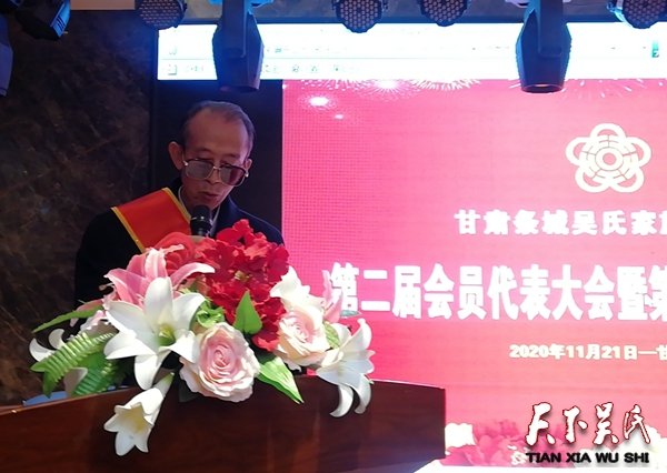 甘肃条城吴氏家族宗亲会会长吴有忠报告工作