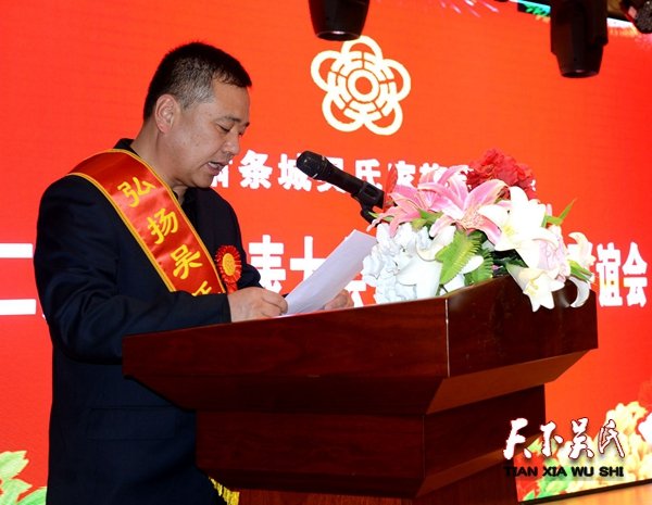 甘肃条城吴氏家族宗亲会副会长吴文发宣读《甘肃条城吴氏家族宗亲会关于对吴兰珍等四名家族姑娘给予表彰的决定》