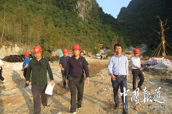 中国报道讯(吴蜀丰 通讯员覃源 岑福山)日前(11月21日),中共广西东兰县委常委、宣传部长、副县长黄文江,带领县旅投公司等部门,深入广西第一湾股份公司长乐宫景区项目建设工地,检查指导复工复产和安全进度工作,现场协调解决项目存在的困难和问题,确保项目高效有序推进。香港进源集团广西第一湾股份有限公司董事长吴进枝陪同检查。