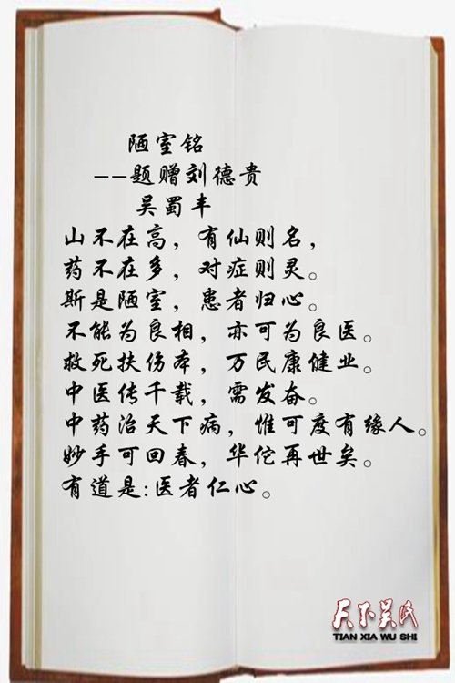天下吴氏网讯(吴蜀丰)【编者按】贵州省六盘水市著名的中医世家吴道洪,为祖国的中医发展做出了较大的贡献,他虽然跨鹤西去,但他的三儿子吴恒将继续传承父亲的事业,将中医发扬光大。吴恒在感谢亲朋好友参加父亲的追悼会上是这样内心的坦言。