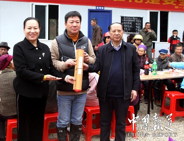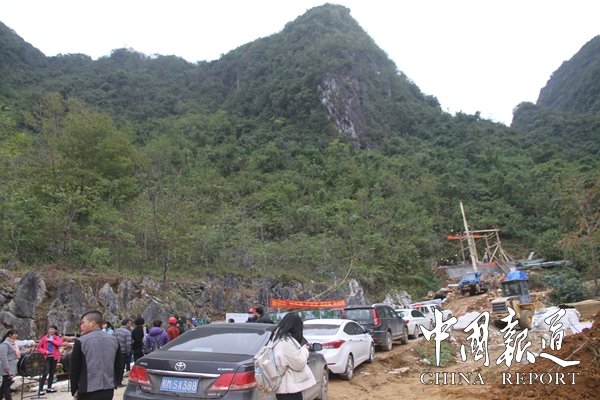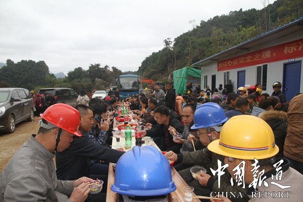 11月28日,考察团成员来到公司正在建设的名胜景区长乐宫时,受到公司和当地干部群众的热烈欢迎,当地群众用壮族迎宾最高规格壮族铜鼓阵欢迎他们的到来,长乐宫景区大门前,铜鼓声、鞭炮声不断,考察团认真了解景区开发规划、目标,还参加公司举行的长乐宫洞口洞门立门仪式,中午,考察组成员一起与公司员工和当地群众共200多人共进当地壮族特色的长桌宴午餐,王淑萍院长代表写经院给第一湾股份公司赠送珍贵的长达6米的经典书法经文。