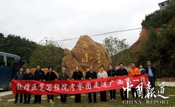 中国报道讯(吴蜀丰通讯员覃源岑福山)2020年11月27日,革命老区广西东兰县,虽己入冬,但却非常暖和。正在紧锣密鼓施工中的香港进源集团广西第一湾股份公司旗下的长乐宫名胜景区首次迎来了甘肃省市级非遗传承人、成就“敦煌写经”传奇的甘肃敦煌市写经院王淑萍院长一行,她们不远万里,专程考察世界长寿金三角东兰县旅游项目。