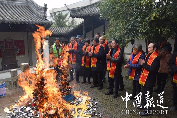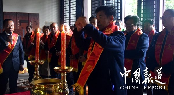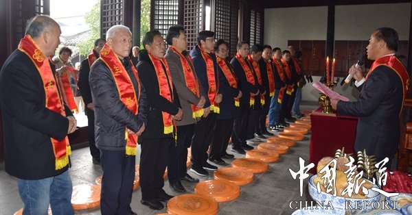 祭祀大典上吴新主祭代领大家一起披挂授带逐个净手,向传代始祖恭孝王仲雍公上香献帛,献荷花亭、献箸、献爵、初献爵、再献爵、三献爵、献花环、献祭品、献西牲、献点食、献羹汤、献饭、献茶等礼仪祭祀程序有条不紊。