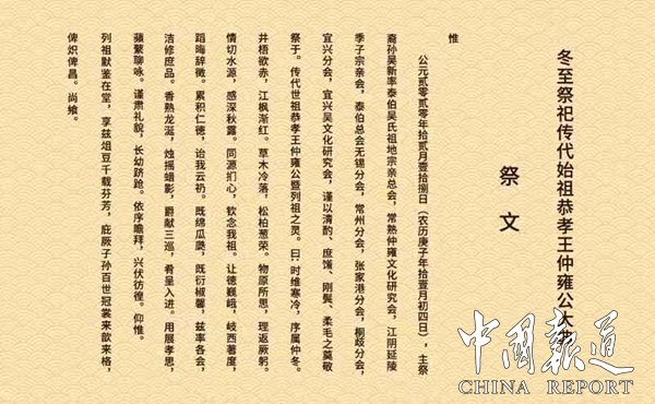 泰伯吴氏祖地宗亲总会会长吴新跪拜恭读祭文