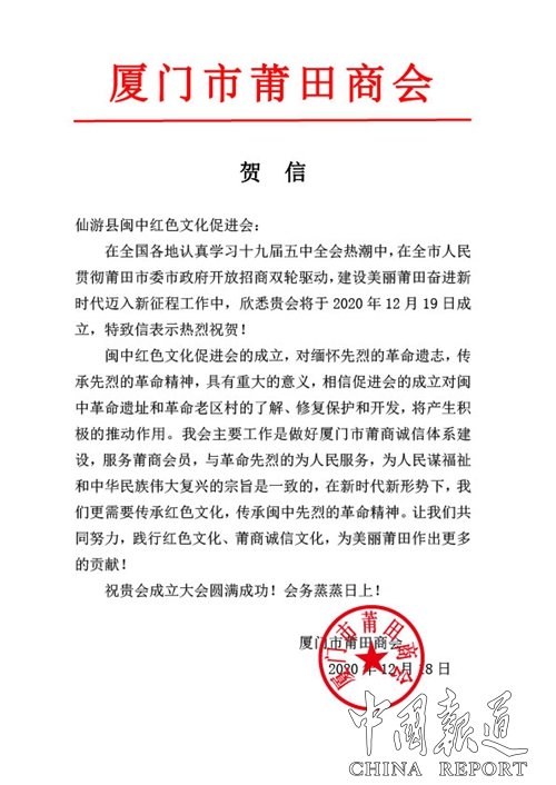 中国报道讯((吴蜀丰通讯员张德斌)12月19日下午,仙游县闽中红色文化促进会在国际油画城仙游中央馆举行成立暨第一次会员大会,大会由市诚信促进会副会长吴燕秋主持,仙游县文化主管部门领导到场宣读了批文,监管部门领导到场按照相关章程表决、选举等程序,正式成立了“闽中红色文化促进会”。市诚信促进会副会长吴燕秋邀请到爱国名医陈展如后裔代表陈文波先生为红色文化促进会提供了闽中特委地下交通站的原始材料,对筹备工作作出的诸多贡献。这标志着仙游红色文化将迈上新台阶。中共闽中特委书记王于浩烈士的后辈侄子陈新忠当选为会长。