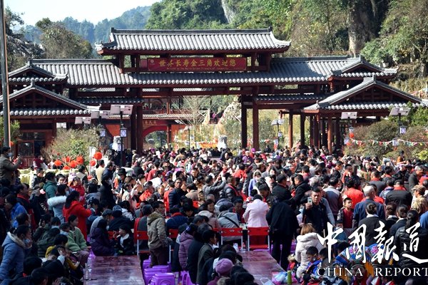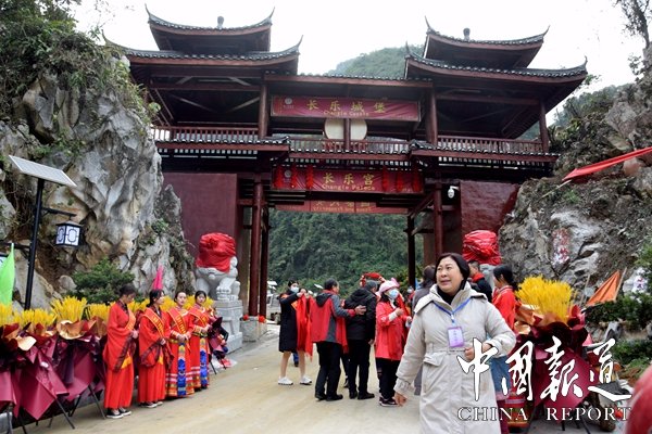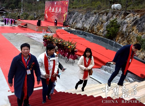 中国第一个宫殿式溶洞长乐宫风景区今日上午(1月1日)举行隆重的开业庆典,东兰县委县政府等有关负责人加开业盛典。