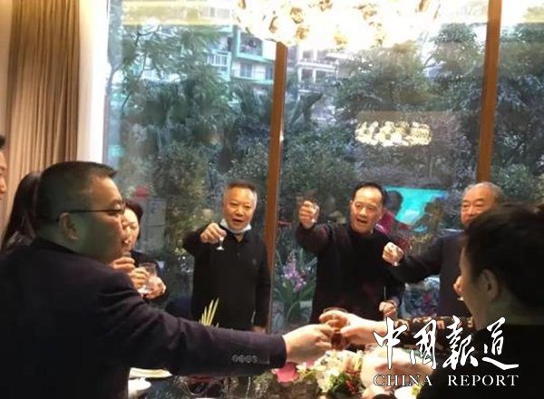 吴天佑宗亲祖籍福建,来成都投资发展已近20年,先后投资国伟建材、闽盛实业、粵菜会所、以及银湖海鲜等实体经济行业。事业顺利,收获满满。受天佑宗亲之邀,世吴副主席、川吴总会会长吴天智与川吴总会顾问、四川省退伍士兵就业创业中心党组书记、原武警四川总队副政委吴万锦大校,星辰航都国际洒店董事长吴明全,川吴总会执行秘书长吴华,鸿林大洒店董事长吴仕锦,万贵酒坊、万鑫农业董事長吴万贵,善纪源公司总经理吴言芳等,一行12人,带上川吴礼品---吴氏书法名家吴洪武书写的“至德贏天下”、著名涉吴茶企国盾集团子公司-福建省仙茶美公司生产的富硒八仙金花茯茶,一同前往祝贺,受到热烈欢迎与款待。