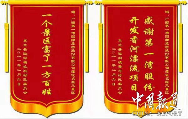 香港进源集团广西第一湾股份公司在这里举行世界长寿金三角巴马国际旅游区香河漂流旅游名胜风景区复工动员大会,拉板村、香河村民和邻近的村庄以及设计、规划、灯具、绿化、监控、施工等单位和村支书及村民代表参加复工动工动员大会。