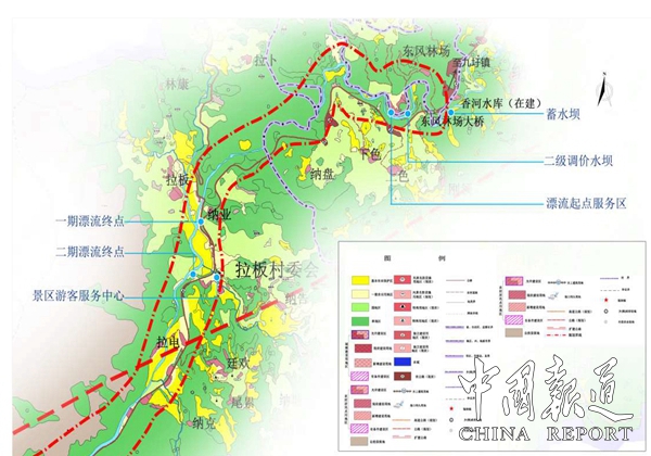 漂流项目分三期投入一期为水上深山峡谷漂流有氧运动,二期是壮族特色民宿,三期轨道小火车和山茶油深加工等农副产业。该项目在中共东兰县委、县人民政府的大力支持下已完成可研报告,总体规划,详细规划,修建性规划,环评和上报政府评审、批复立项。