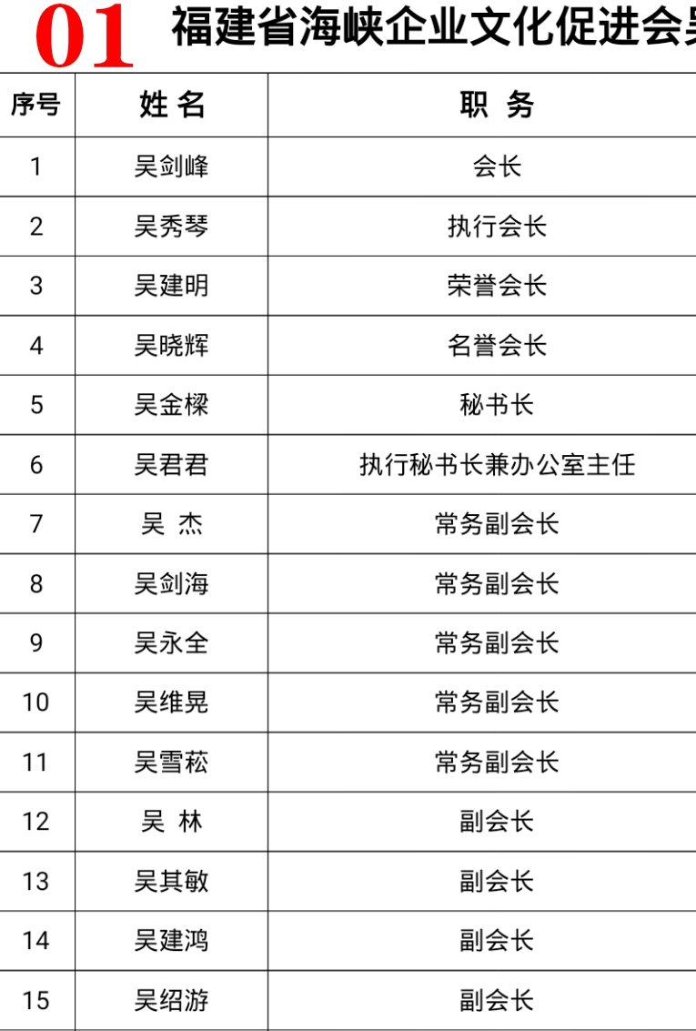 吴氏企业战略联盟事理事名单