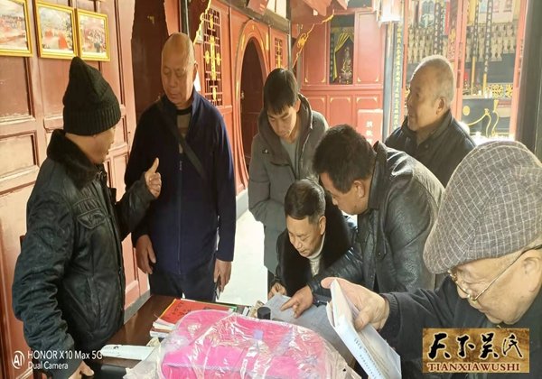 2月14日一大早,吴天智一行13人,冒着大雾,从雅安市荥经县出发,来回奔赴1240多里,到四川省绵阳市三台县西平镇吴氏宗祠看望从1976年开始以来,一直潜心研究吴文化,无报酬守护西平吴氏宗祠几十年,无儿无女,一生未娶的吴金元宗长,与他拉家常、问冷暖,详细了解他的身体状况、经济来源等情况,感谢他为传承吴文化和至德精神所作出贡献,他的这种精神永远值得我们敬仰和学习。吴天智鼓励他坚定信心,战胜困难,继续努力为吴氏服务,有困难随时联系我们。