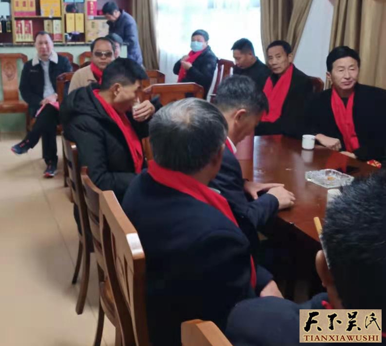 年会在弥漫着新年的气氛,大家互相作揖互问“拜年”,一种血脉亲情般的温暖在会议室燃烧!会议在温馨中开始,首先,会长代表协会作2020年度工作汇报,会长说:万年县吴姓文化研究协会(以下筒称协会)成立到今年已是十五啦,十五年来,始终秉承“不忘初心,牢记祖德,敦亲睦族、共亲共荣”的理念,在联谊恳亲、文化交流、济危助困、化解矛盾等诸方面做了一些实际工作,为大多数宗亲所认可和县委、县政府所肯定,在海内外宗亲团体中提升了一定的知名度。尤其是2020年在疫情肆虐的大环境下,协会积极防疫防控,在可控可防情况下仍对外有序的开展活动,作了一些实际工作。走访了成都、阳、北岸、长沙、珠海等地的宗亲,走访了广东珠三角宗亲会,汕头宗亲会,顺德宗亲会,茂名宗亲会,佛山安海宗亲会,博罗宗会,福建龙岩宗亲会,江西于都宗亲会,赣州宗亲会,鄱阳宗亲会余干宗亲会,弋阳宗亲,上饶宗亲会,贵溪宗亲,乐平宗亲等;参加了海南海口“首届中华姬吴谱纲”会议。